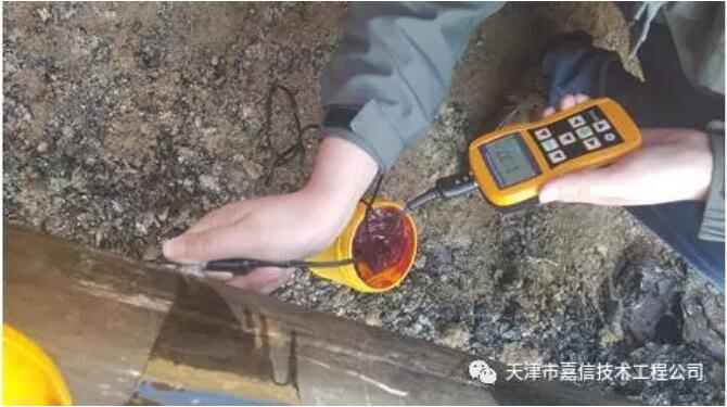 自金屬磁記憶技術(shù)應(yīng)用于管道檢測項目中以來,天津嘉信已多次積極投身于檢測現(xiàn)場,并且檢測效果顯著,成績斐然。17年3月28日,JX-MTM金屬磁記憶檢測儀在新疆進行檢測,針對某場站一條1km的管線試驗段,實施了現(xiàn)場檢測并對檢測出的異常段進行了開挖驗證,發(fā)現(xiàn)管道內(nèi)腐蝕情況嚴重,在6點鐘方向及7點鐘方向位置剩余壁厚僅為1.77mm和1.37mm,其余位置剩余厚度均在6.6mm左右,這一檢測成果大大鼓舞了潛心多年研究金屬磁記憶檢測技術(shù)的嘉信人,這一成果表明,金屬磁記憶技術(shù)將切實地為管道檢測提供一種高效的新選擇!