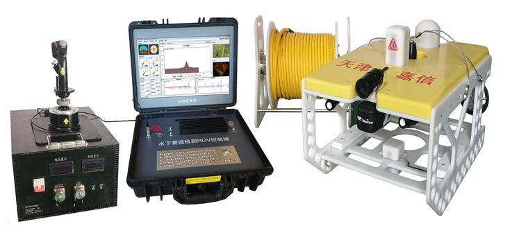 穿跨越油氣管道檢監(jiān)測與評價,對于保障管道的運行安全具有非常重要的作用。嘉信公司將用于海底管道探測的ROV(Remote Operated Vehicle)技術(shù),與陸上埋地鋼質(zhì)管道的腐蝕檢測技術(shù)相結(jié)合,歷經(jīng)十余年潛心開發(fā)出的“江河穿越管道腐蝕檢測系統(tǒng)River-ROV”,為解決水下穿越段管道檢測難題提供了強有力的技術(shù)手段。該檢測ROV系統(tǒng)屬于纜控水下機器人檢測裝置,由水上操控顯示終端和水下檢測裝置等部分組成,水上和水下設(shè)備通過臍帶纜實現(xiàn)連接,由發(fā)電機提供動力。ROV系統(tǒng)整合了管道定位、陰保電位CIPS測量、電位梯度DCVG檢測、管道埋深測量、光纖通訊、DGPS定位、數(shù)據(jù)庫及檢測數(shù)據(jù)分析等技術(shù)手段,實現(xiàn)對江河管道外防腐與保護狀況(ECDA方法)等多方面的檢測和評價。